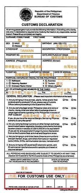 海關申報單(Customs Declaration)填寫說明