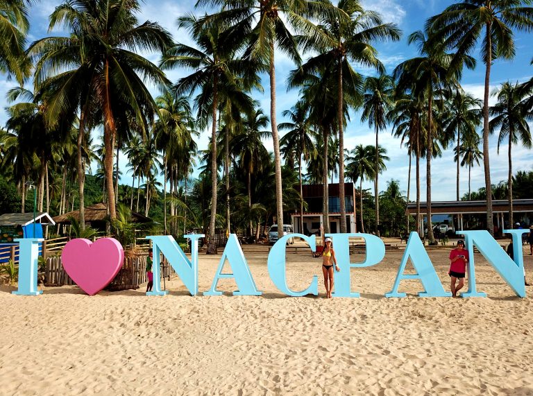 CNN票選出來的「世界前十大美麗海灘」,Nacpan Beach有長達4公里的壯闊沙灘景色,最出名的是「粉紅夕陽」,每當夕陽西下,夕陽餘暉千變萬化的色調,最常將整片天空染成粉紅色系,讓夫妻、情侶們陷入這大自然的浪漫的氛圍中。距離愛妮島小鎮約45分鐘的車程,路途些微顛簸,建議搭接駁車前往。