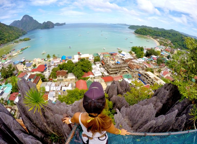 愛妮島有許多高聳的石灰岩,上面住著許多的金絲燕,金絲燕大量築巢形成燕窩,愛妮島(El Nido)的名字也因此而來。在愛妮島的小鎮上就有著這樣的一個神祕入口「Canopy Walk」,工作人員幫忙穿完裝備之後,要手腳並用地爬上這些石灰岩石,並且穿過一個吊橋,登頂之後可以從高處俯瞰整片大海,小鎮的風光也盡收眼底。