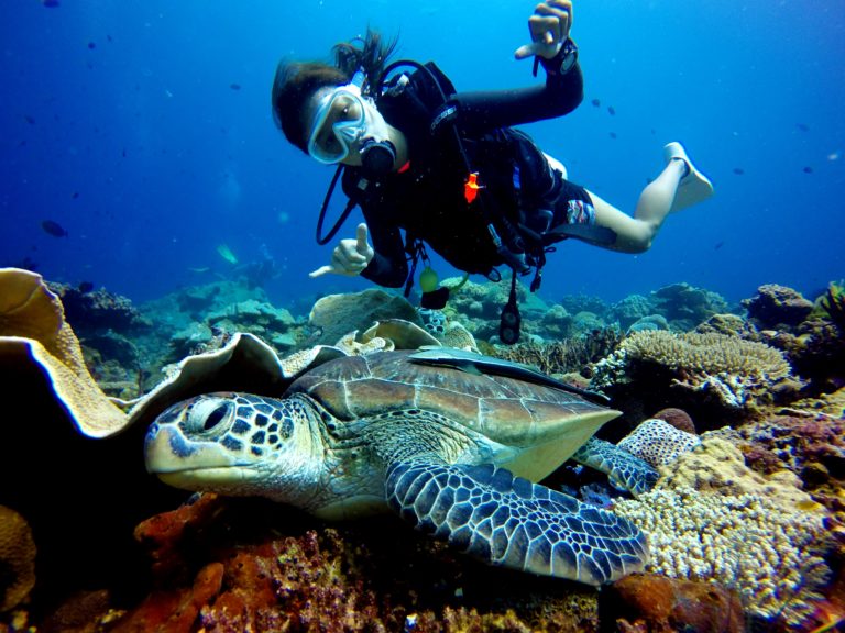 當然可以!「體驗潛水」專門設計給沒有潛水執照的旅人們。潛水教練以1帶1,或是1帶2的方始進行。在出海前,教練會先上課,講解基本的潛水概念及手勢。出海後,以不超過12米的深度帶著你遨遊水底。當成群的熱帶魚游在你的身旁,小丑魚也你面前表演時,相信我!這個潛水的體驗將會讓你此生難忘!